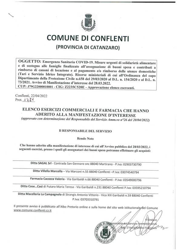 ELENCO ESERCIZI COMMERCIALI E FARMACIA CHE HANNO ADERITO ALLA MANIFESTAZIONE D’INTERESSE