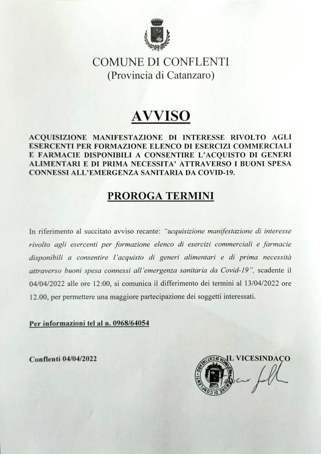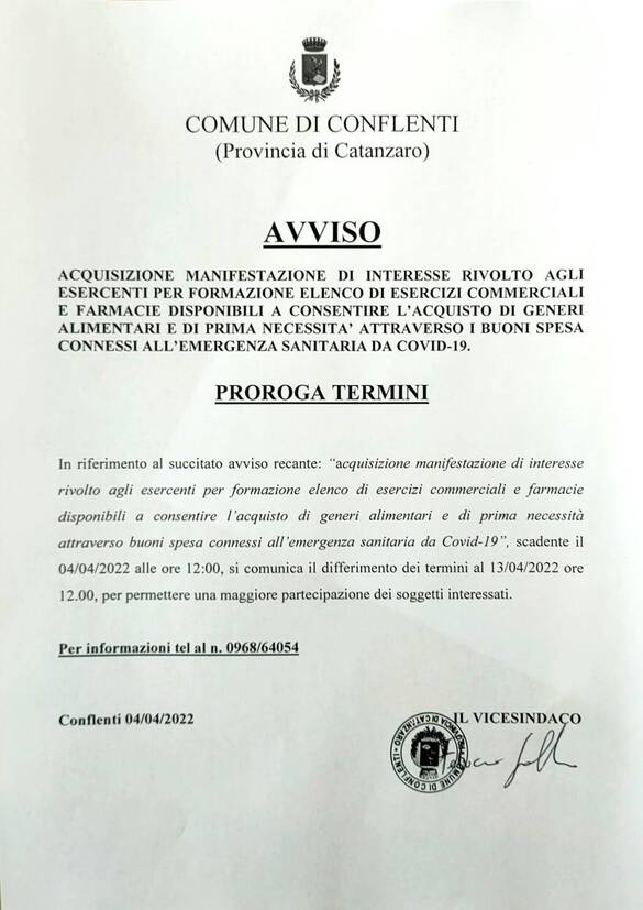 Gli esercenti, con propri punti vendita nel territorio del Comune di Conflenti e quelli strettamente contigui, interessati ad essere inseriti in un elenco comunale di esercizi commerciali e farmacie, disponibili a consentire l’acquisto di prodotti alimentari e generi di prima necessità, farmaci anche da banco e parafarmaci attraverso l’utilizzo dei buoni spesa rilasciati ai soggetti economicamente svantaggiati nell’ambito delle “Misure di solidarietà alimentare”, manifestando il proprio interesse all’adesione attraverso l’invio di apposita domanda, come da schema allegato al presente Avviso, corredata dagli allegati richiesti, in possesso dei requisiti di ordine generale e dei requisiti tecnico organizzativi adeguati alla natura dell’affidamento.